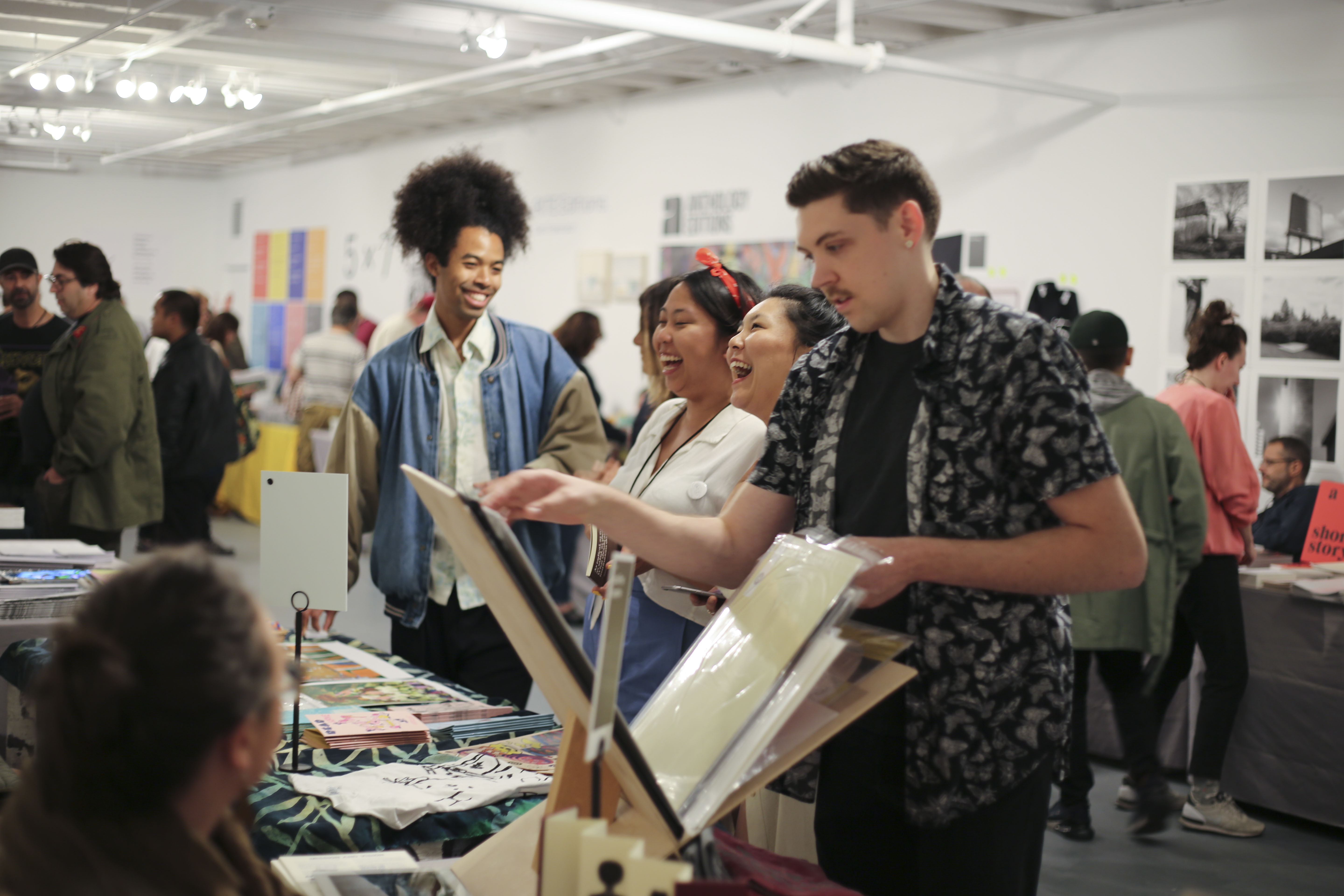 A special handshake at the Homie House Press table. Photo by Katie Neuhof.